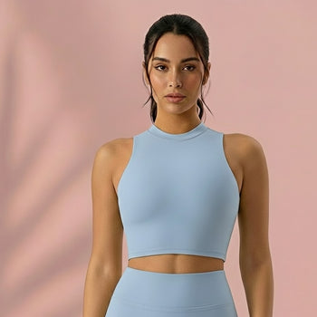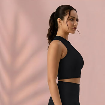 Most high-neck bras feel like they're cutting off airflow, but this one sits soft and smooth. Wore it lifting and didn't feel restricted once.